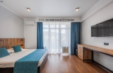 -2-3-х местный номер Стандарт с видом на бассейн. Номер оснащен двуспальной и односпальной кроватями, телевизор 43 диагонали, кондиционер, электрический чайник, холодильник. Санузел с душем и феном. Балкон с видом на бассейн со столом и стульями.
